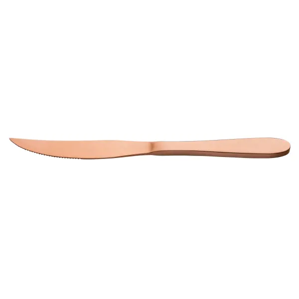 Introducing the Rio Steak Knife – Pack of 12. These knives are crafted from highly polished 18/0 stainless steel, featuring a sleek, modern design with a contemporary colour and elegant finish. They add a warm, refined glow to any dining setting and pair beautifully with natural materials like wood for a sophisticated touch, elevating your table presentation.