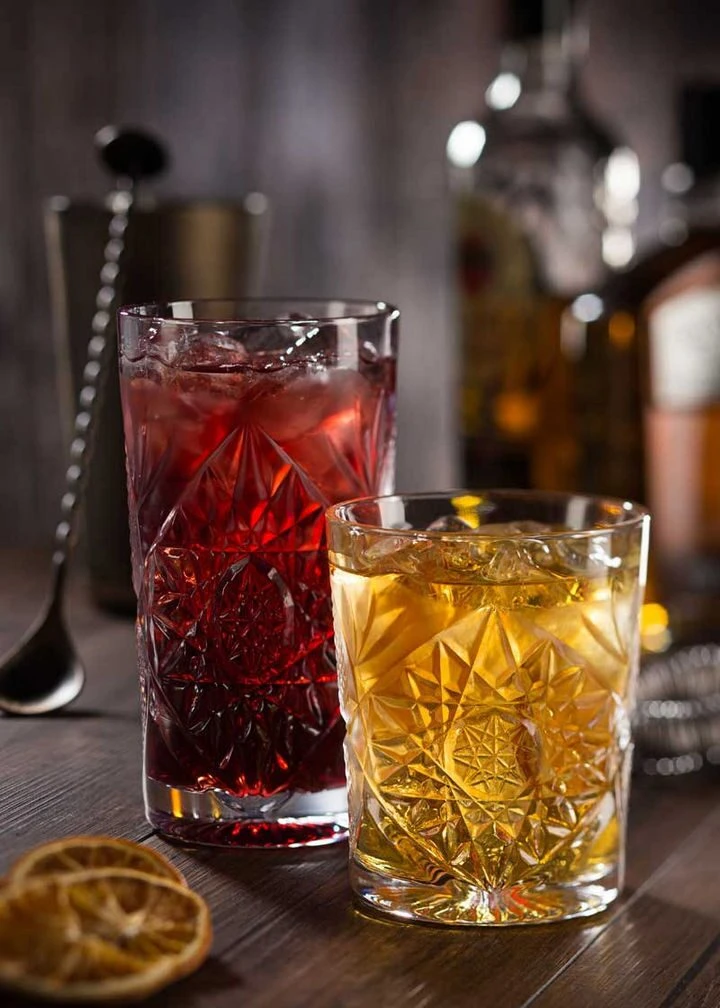* Elevate the aesthetic of any bar, restaurant, or home setting with these eye-catching tumblers.