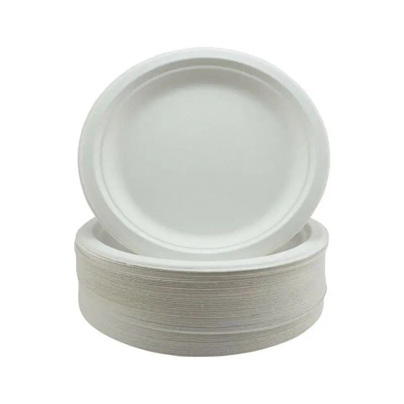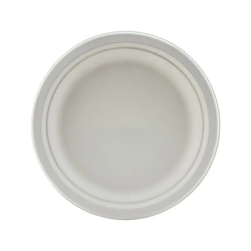 These 7 Inch round bagasse are sturdy, strong and fully compostable. A great alternative to plastic and foam.