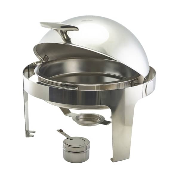 Introducing the Round Deluxe Roll Top Chafer 6L, an embodiment of style and substance. This premium-quality, stainless steel chafing dish ensures your culinary creations maintain the perfect serving temperature, ready to impress your guests. Its roll-top design facilitates effortless access while preserving consistent heat, making it an indispensable asset for any catering professional.