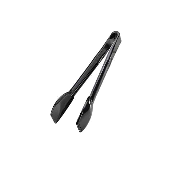 These 9-inch black salad tongs are the ideal serving utensil for buffets, catered events, and any food service environment. Crafted from a single piece of robust polycarbonate, these tongs are break-resistant, easy to clean, and designed for longevity. Their black finish provides a contemporary look that complements any decor.