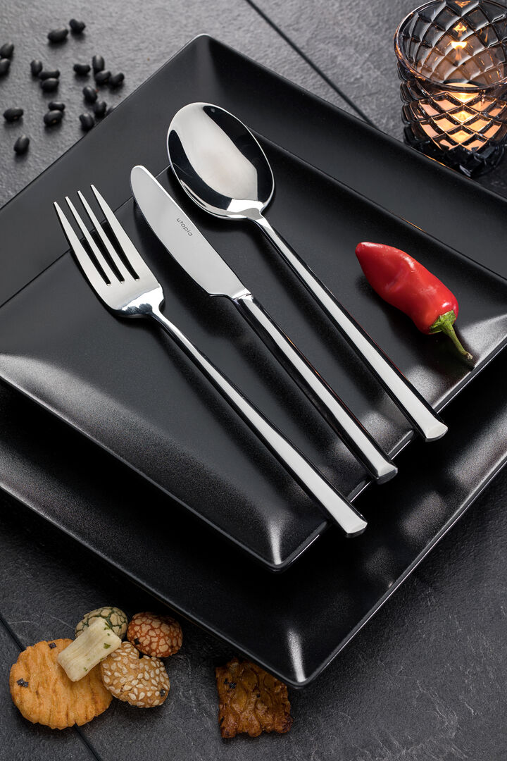 * Create a sophisticated and cohesive table setting with the slim line design and elongated handles, perfectly suited for larger tableware arrangements.