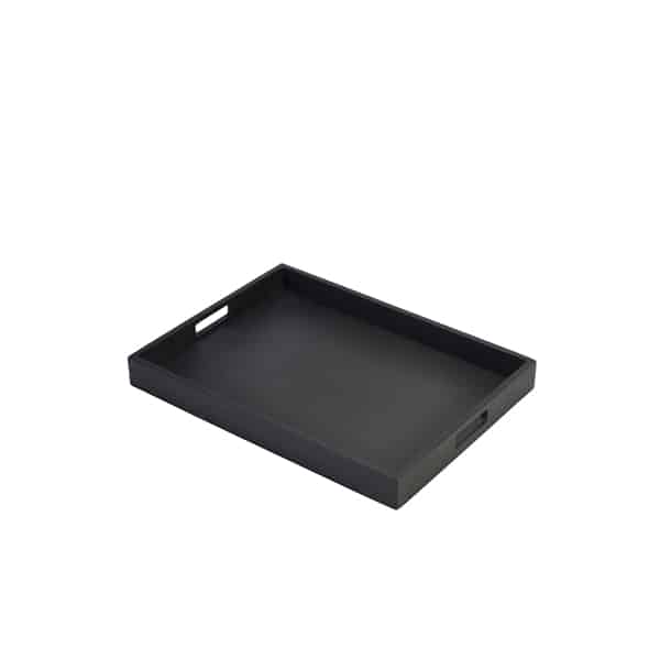 Introducing the Solid Black Butlers Tray 44 x 32 x 4.5cm. This tray is the perfect blend of modern design and practical functionality, ideal for adding a touch of elegance to any setting, from bustling cafes to sophisticated dining establishments. Its sleek black finish complements any décor, offering a versatile serving solution.