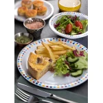 Introducing the Spanish Steps Plate 9″ (23cm) – Pack of 48 from Kingline. These plates provide an ideal all-purpose dinnerware solution, carefully designed to withstand the rigours of heavy-duty foodservice. The robust gloss finish resists chipping, scratching, and staining, ensuring a flawless presentation every time. And for added convenience, they are dishwasher safe, streamlining cleanup and saving valuable time.