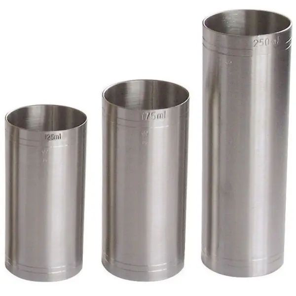 We offer a comprehensive range of **Stainless Steel Thimble Spirit Shot Measures 25/35/50/125/175/250 ml and Sets**. Each measure is manufactured from high-quality stainless steel and government stamped for accuracy, making them ideal for use with whisky, gin, vodka, and rum. Available in individual capacities of 25ml, 35ml, 50ml, 125ml, 175ml, and 250ml, as well as convenient sets, we have the perfect solution for any bar or restaurant.