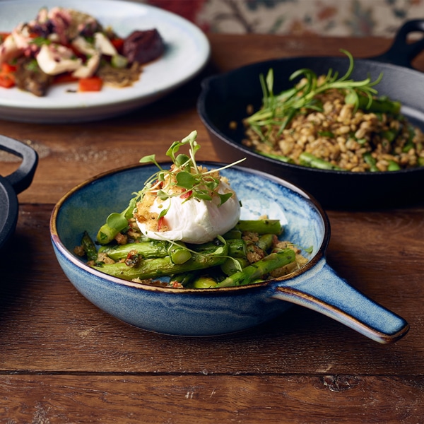 * The individual reactive glaze ensures each piece is unique and visually stunning, heightening the dining atmosphere.