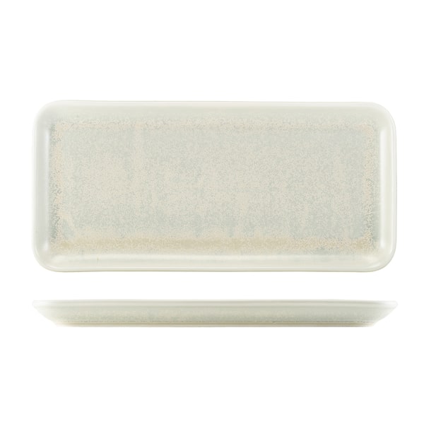 Enhance your service with the Terra Porcelain Pearl Narrow Rectangular Platter 36 x 16.5cm – Pack of 3. Inspired by the subtle iridescence of pearls, these platters feature a unique reactive glaze. This ensures gentle colour variations, making each piece a distinct work of art. The soft whites, greens, and blues shimmer delicately, introducing a touch of refined opulence to any table setting. Perfect for showcasing appetisers, entrees, or desserts, these platters are the ideal way to present your culinary creations with flair.