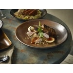 We offer a pack of 3 Terra Porcelain Rustic Copper Deep Coupe Plates, each with a 28cm diameter. These plates radiate earthy charm and sophistication, featuring a reactive glaze that ensures each piece is subtly unique. The deep coupe design is perfect for showcasing a wide array of dishes, from comforting stews to artistically presented main courses. The rustic copper finish adds warmth and character to any table setting. Built to withstand the demands of a bustling commercial kitchen, these plates are both beautiful and resilient.