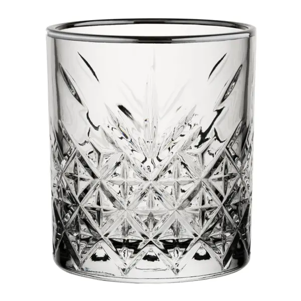 Introducing the Timeless Vintage DOF Gunmetal Rim 12.5oz (35.5cl) – Pack of 12. A striking addition to the celebrated Timeless Vintage collection, each glass boasts a precious gunmetal rim, adding a touch of glamour and refined elegance. These Double Old Fashioned glasses are perfectly suited for serving spirits, cocktails, or even water with unmatched style. Please note that this item is handwash only.