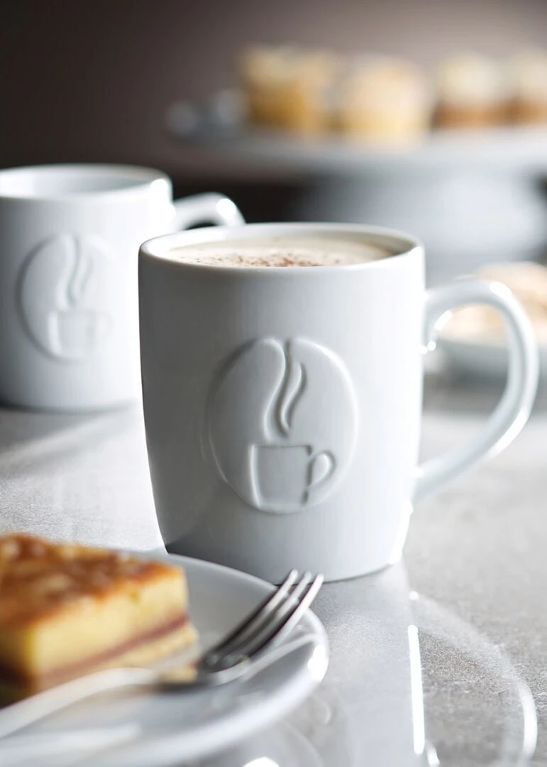 Therefore, we are proud to present the **Titan Java Embossed Mug 15.5oz (44cl) – Pack of 6**. These mugs, part of the prestigious Titan collection, are crafted from resilient Super Vitrified Porcelain Hotelware. They combine exceptional durability with sophisticated design. Ideal for businesses, cafes, or as a premium promotional gift, they make a lasting impact.