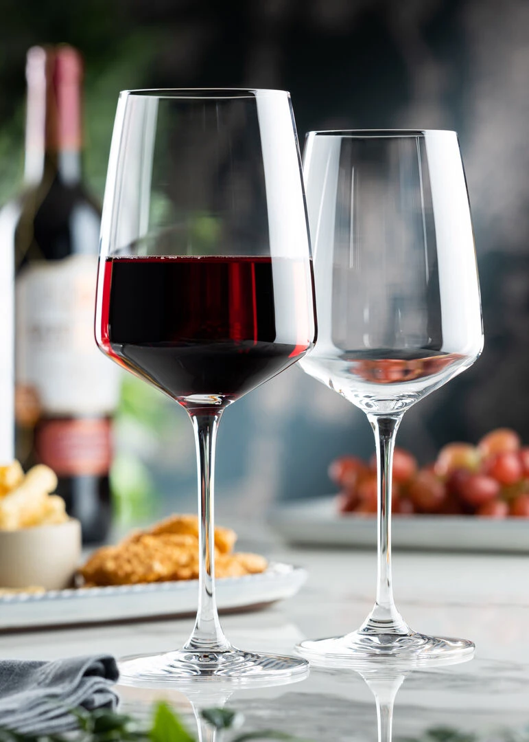 Enhance your dining experience with the Vista Red Wine 18.5oz (52cl) glasses. This set comprises six exquisite red wine glasses, each crafted from 100% lead-free crystal for unparalleled clarity and brilliance. The glasses feature a modern, angular design, not only adding a touch of sophistication to your table but also enhancing the aromas and flavours of your favourite red wines.