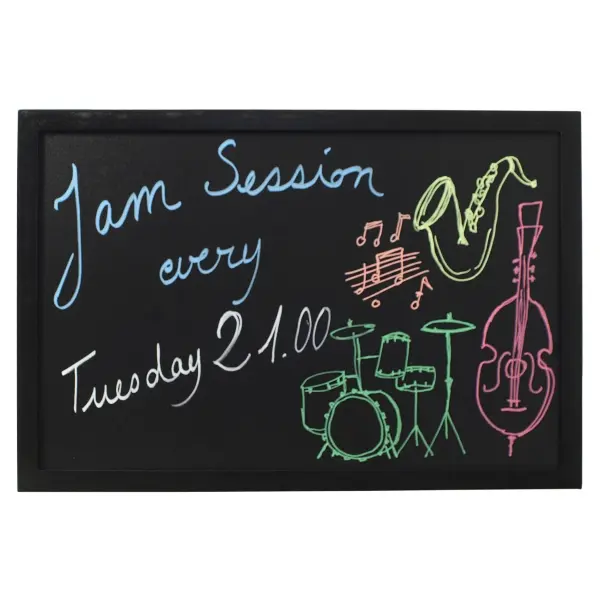 Introducing the Wall Chalk Board 60 x 80cm Black – a superb and affordable way to communicate messages. This chalkboard features a simple, soft wood surround in black. Perfect for displaying messages, menus, special offers and promotions in either landscape or portrait format on a wall or easel. It’s an ideal tool for any business or home environment.