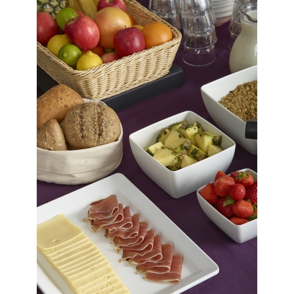 * Enhances food presentation with its modern curved square design, creating a more appealing dining experience for your customers.