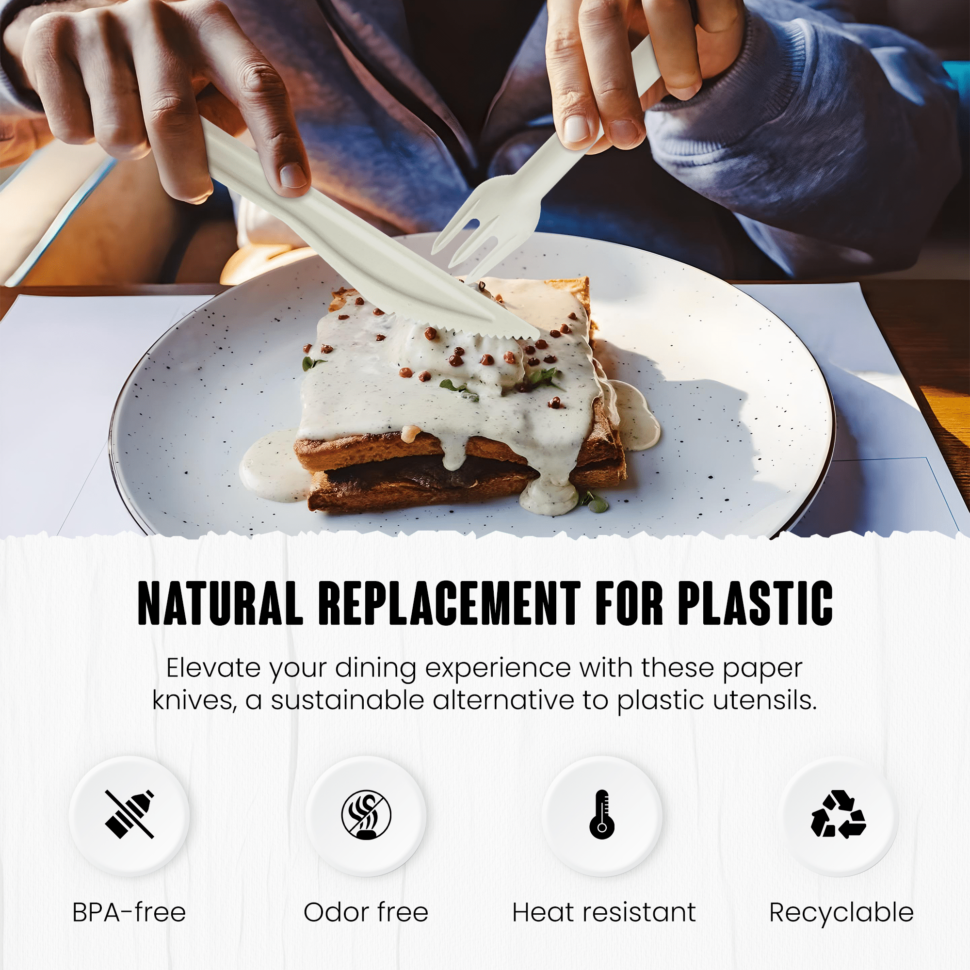 We streamline the sourcing process, delivering ethically sourced, high-quality products with remarkable ease. Our commitment to sustainable materials, combined with stringent quality control and dependable logistics, ensures you receive cutlery that enhances any occasion while minimizing your environmental impact. These White Paper Knives are made from sustainably sourced paper from FSC®-certified forests and recycled materials.