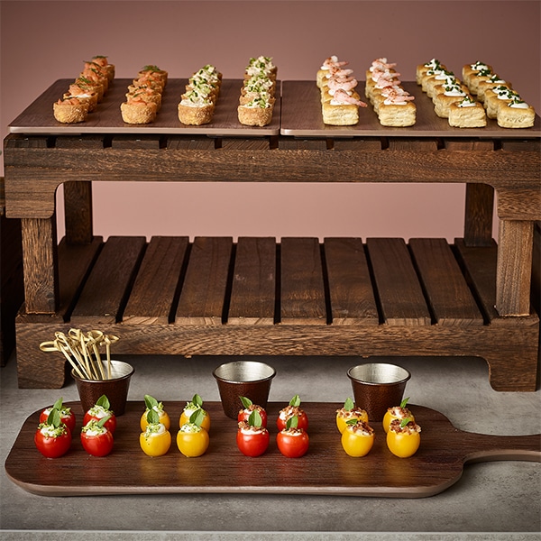 * Adds a touch of rustic elegance to any food display with its attractive wood effect finish.